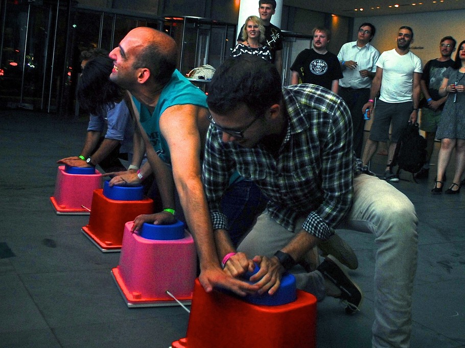 Giant arcade controllers for an exhibit at the Museum of Modern Art in NYC.
