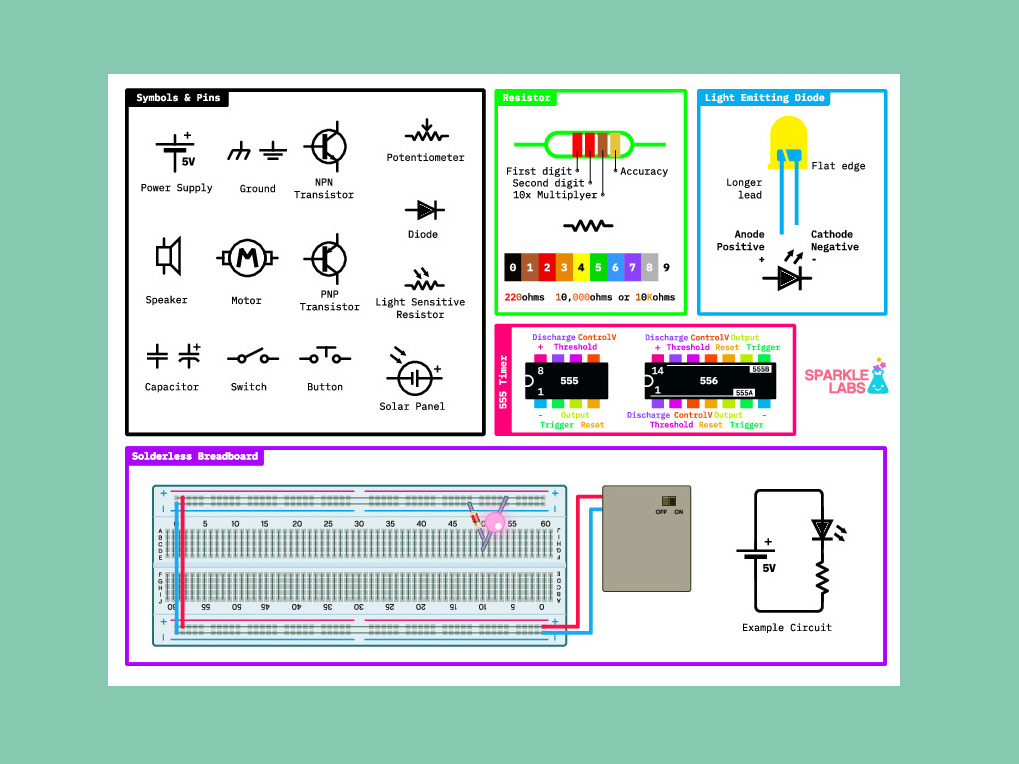 Eco-packaging This kit was redesigned with a paper pulp tray to hold your parts and projects- no plastic boxes needed. All of Sparkle Labs’ packaging is plastic-free and uses recycled paper.